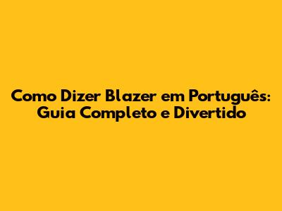 Como Dizer Blazer Em Português: Guia Completo E Divertido