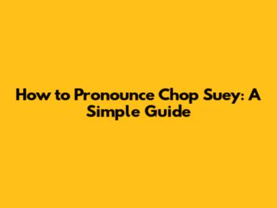 How To Pronounce Chop Suey: A Simple Guide