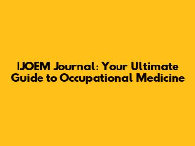 IJOEM Journal: Your Guide To Occupational Medicine