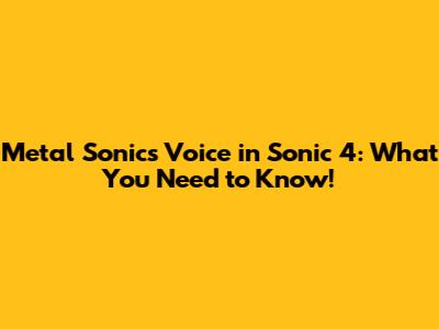 Metal Sonic's Voice In Sonic 4: What You Need To Know!