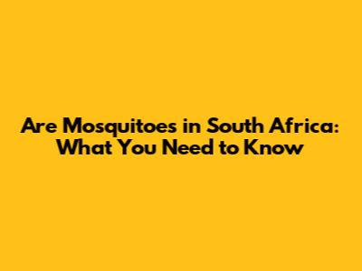 Mosquitoes In South Africa: What You Need To Know
