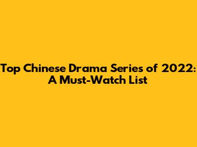 Top Picks: Must-Watch Chinese Drama Series from 2022