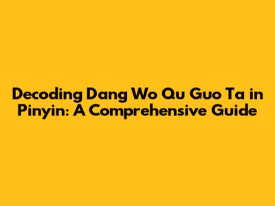 Unlocking The Sounds: A Guide To 'Dang Wo Qu Guo Ta' In Pinyin