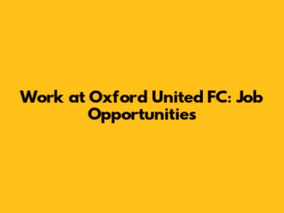 Work At Oxford United FC: Job Opportunities